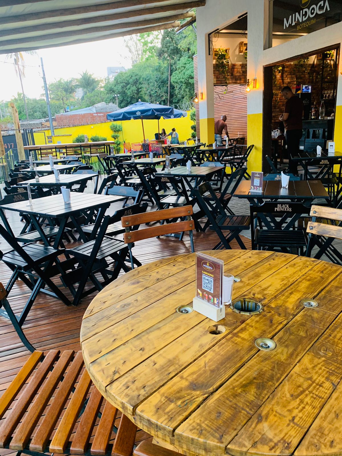 Esse é o Mindoca Botequim, um ambiente extremamente agradável com ambientes abertos e um salão decorado para que a sua confraternização ou Happy Hour com os amigos seja perfeito.